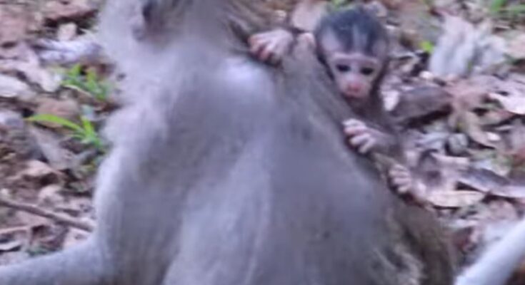 The baby monkey clung tightly, its small hands gripping its motherβs fur, hoping for comfort and milk. But instead of responding, the mother stayed still, ignoring the cries. The babyβs voice echoed softly through the ancient temple grounds, a heartbreaking sound that made tourists stop in silence. Some covered their mouths in disbelief, while others felt tears welling up in their eyes.